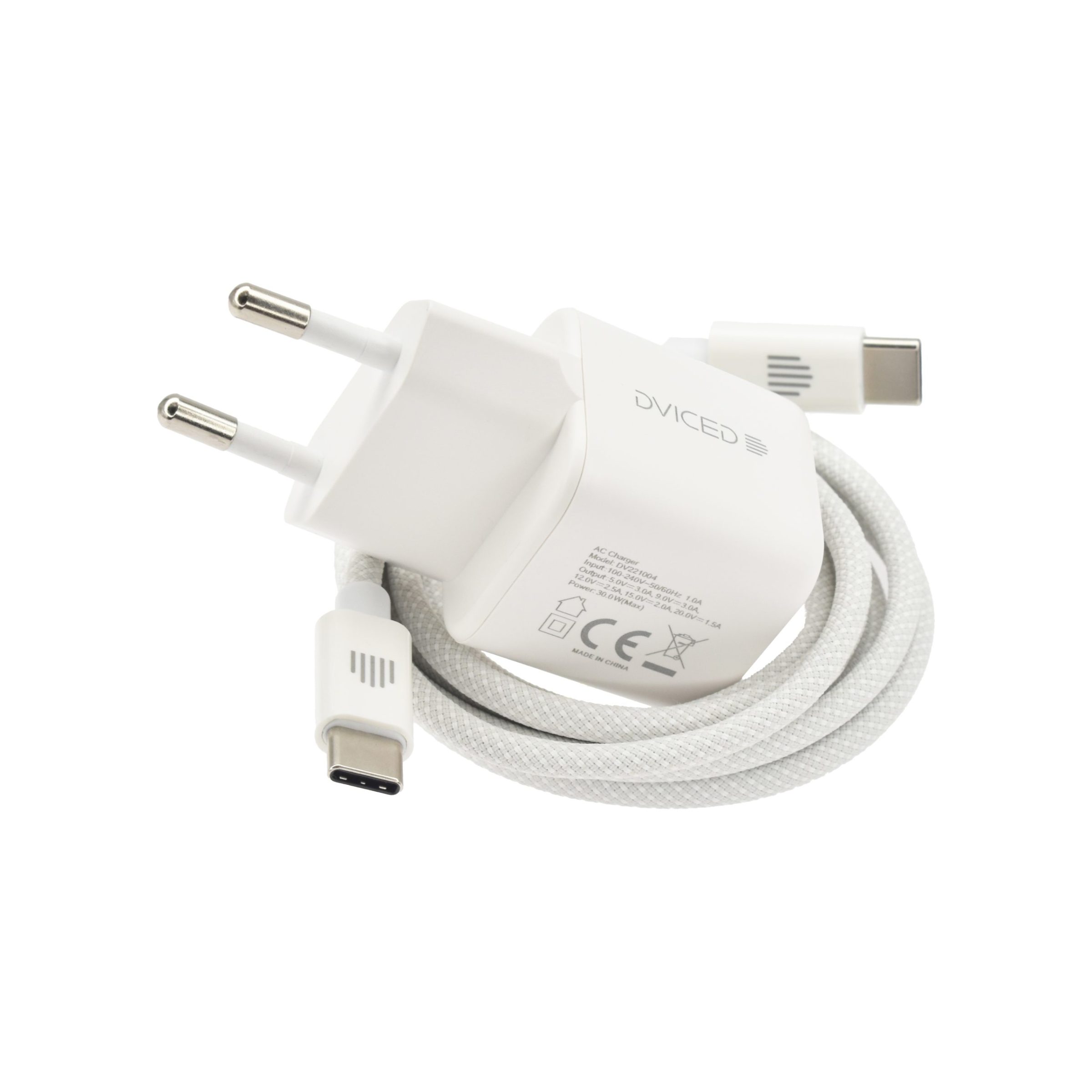 Dviced Wall charger 30W GaN USB-C EU w cable – White