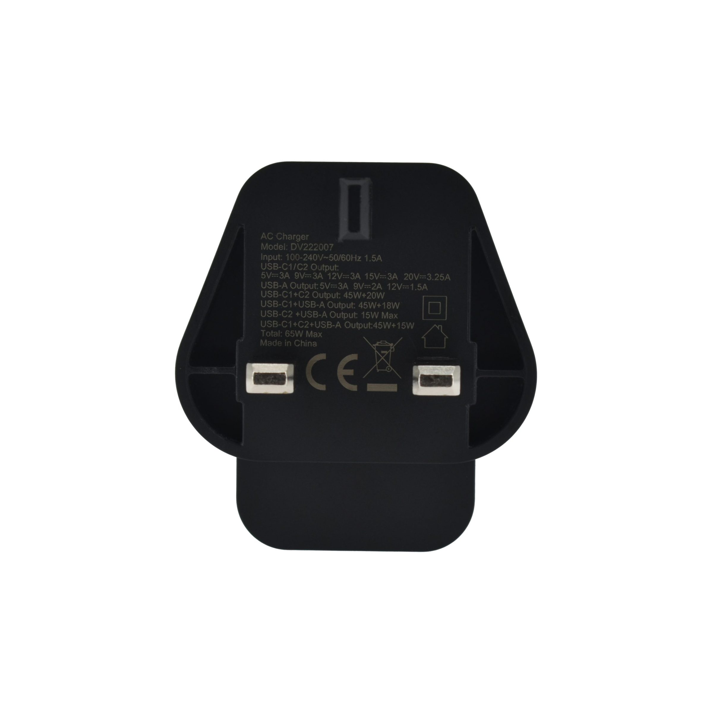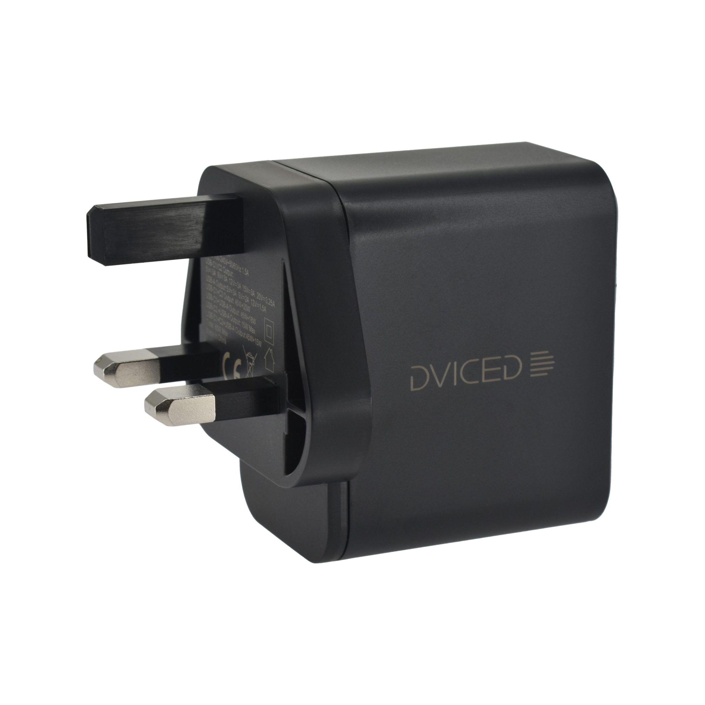 Dviced Wall charger 65W GaN 2 USB-C, 1 USB-A UK – Black