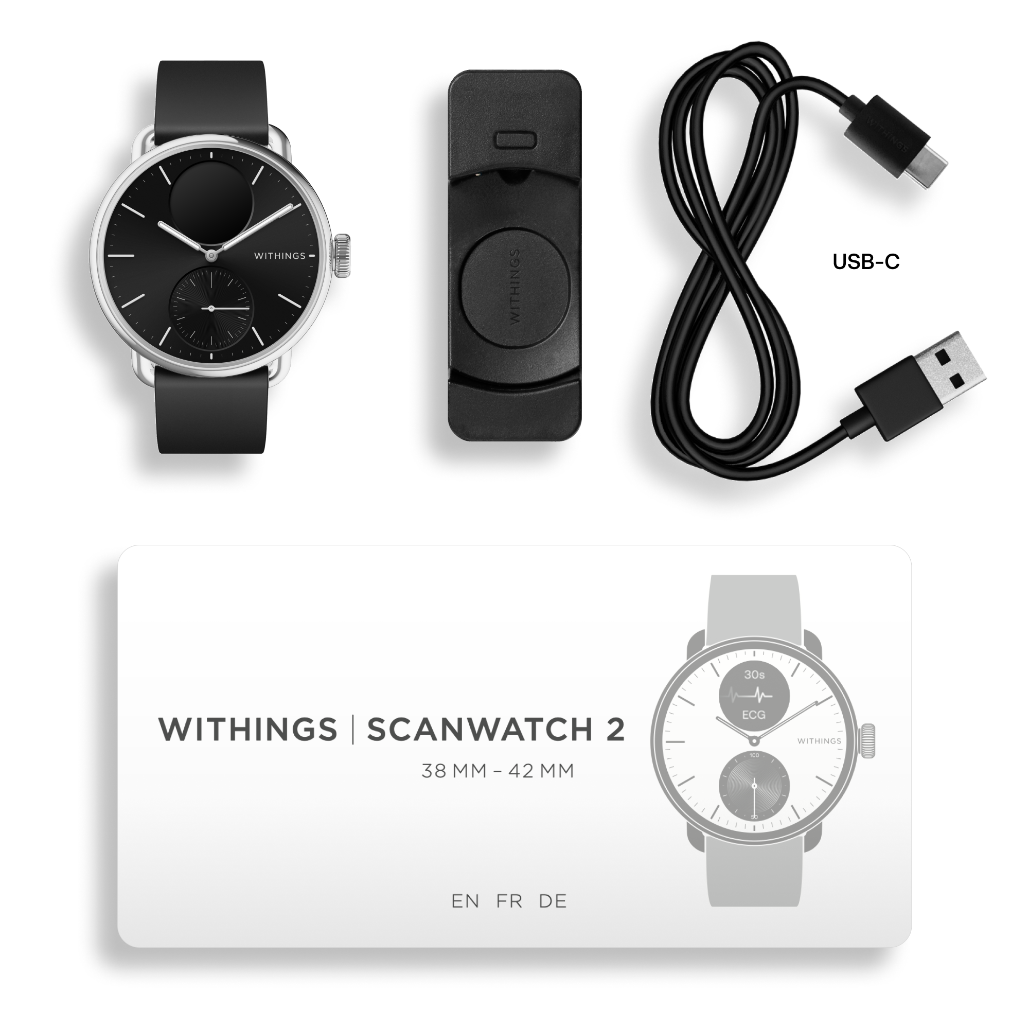 Withings Scanwatch 2 / 38mm (Activity, Sleep Tracker, ECG, Temperature, SPO2 / Stainless steel, fkm wristband, sapphire glass) – Black